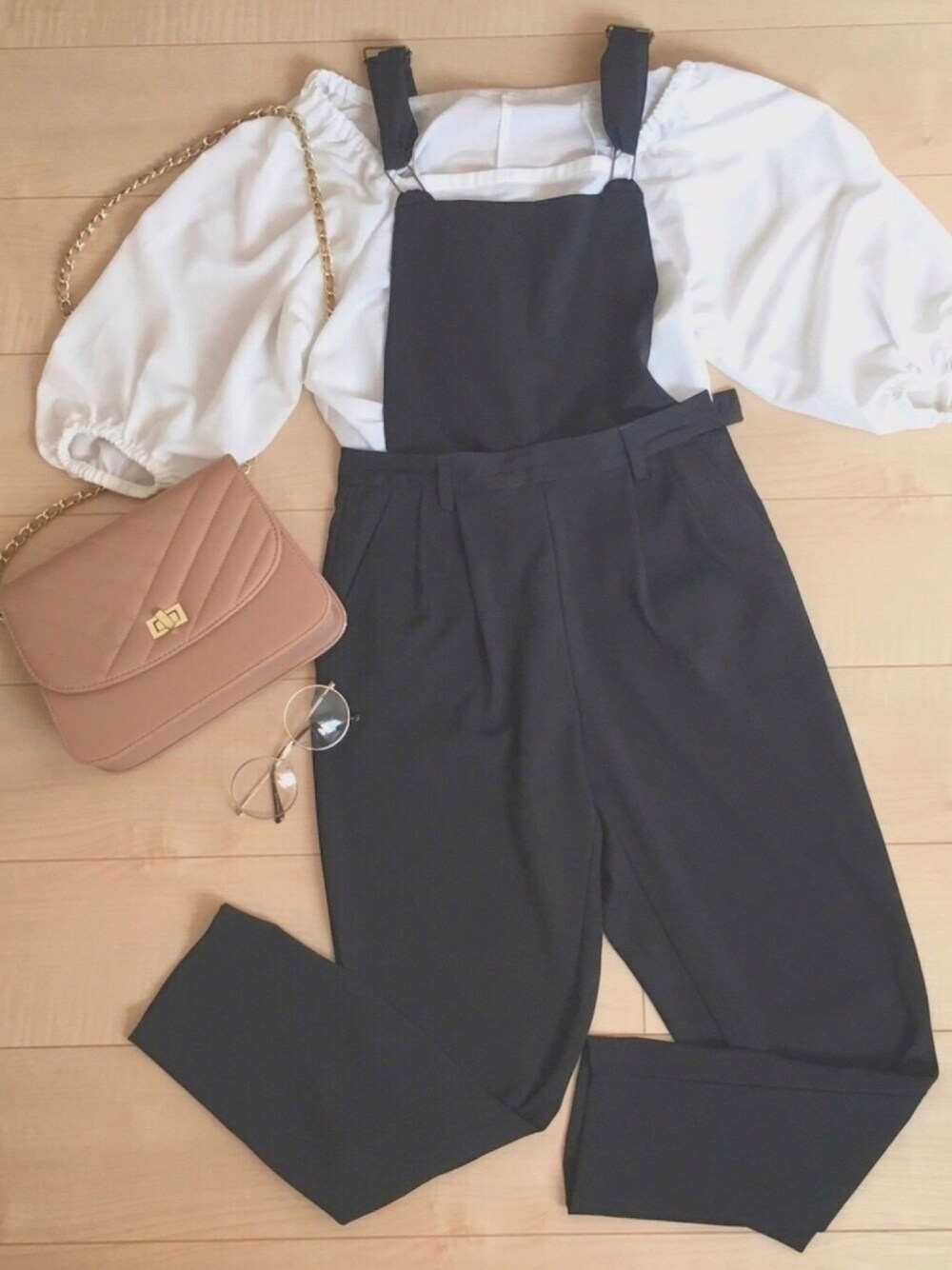 ----- #ootd トップスは、オフショルにもなるので可愛いのです!! UNIQLOで❤︎ サロペットは、おそらくユニクロ😩 モノトーンなので、バックに色を入れました🌸
