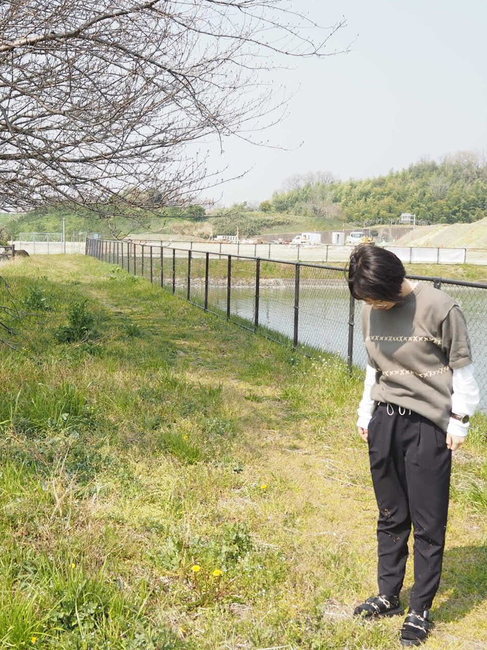 長い前髪をオン眉にしましたよかったら🤳見てください笑 花見したけどまだ咲いてなくて萎え、ズボンにひっつき虫ついて萎え、マーチンが汚れて萎えました笑
