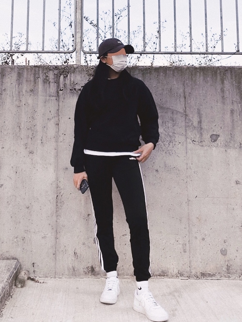 00sdiaryのスウェットパンツ「エッセンシャルズ 3ストライプス パンツ [ESSENTIALS 3-STRIPES PANTS] アディダス」を使ったコーディネート