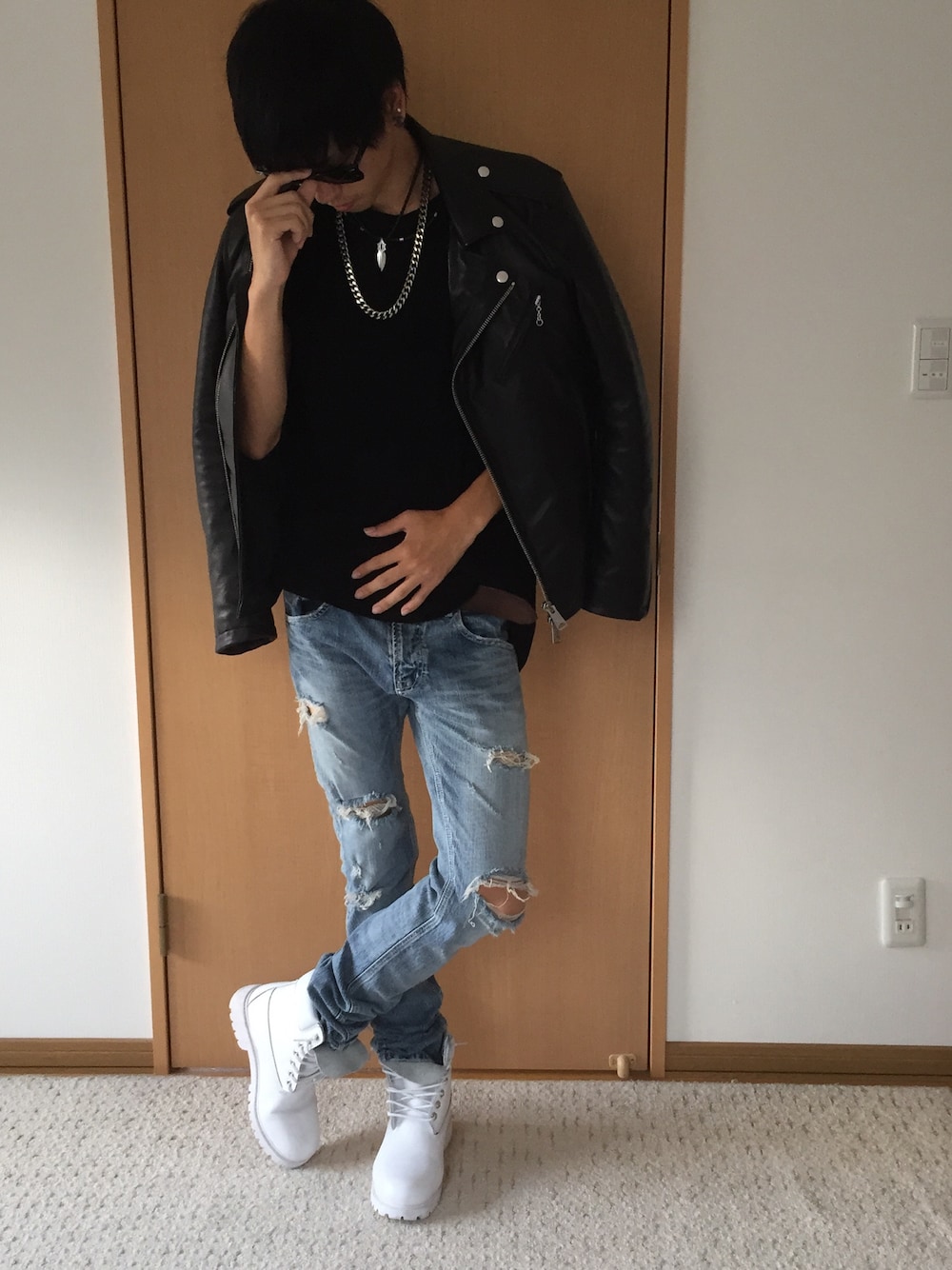 Buffalo BobsRay-Ban$225Timberland¥25,300Buffalo Bobsこの画像から似たアイテムを検索できます4,18614お気に入り (6)140天羽圭太さんへのコメントNO COMMENTコメントはスマートフォン用アプリからご利用できます着用アイテムBuffalo BobsBuffalo Bobsライダースジャケット (ブラック系)ライダースジャケット探すZOZOTOWNで探す$225Ray-BanRay-Banサングラス (ブラック系)サングラスサイズ:000着用コーデ:24件探すZOZOTOWNで探す¥25,300TimberlandTimberlandブーツ (ホワイト系)ブーツサイズ:26cm着用コーデ:25件探すZOZOTOWNで探すBuffalo BobsBuffalo Bobsデニムパンツ (ブルー系)デニムパンツ探すZOZOTOWNで探す天羽圭太のライダースジャケットを使ったコーディネート一足先に秋に向けてレザーデビュー!!コメントを表示2015.8.11着用ブランドBuffalo BobsRay-BanTimberlandタグ#レザージャケット#デニム#ダメージデニムパンツ#黒Tシャツ#ライダース#ダブルライダース#サングラス#秋のコーデ#三代目JSB#登坂広臣モデル情報男性・174cm・20歳ミディアムヘアー似ているアイテムBuffalo Bobs × ライダースジャケットRay-Ban × サングラスTimberland × ブーツBuffalo Bobs × デニムパンツ天羽圭太@00uta / 174cm / MEN / ミディアムヘアー0コーディネート0フォロワー注目のコーディネートアプリでもっと見るもっと見る