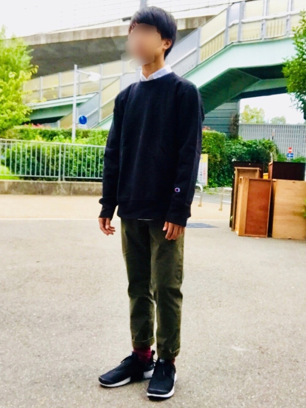久しぶりの投稿です☺️ 寒くなってきたので秋コーデ! 秋っぽくカーキのパンツに 白シャツに黒トレーナー! 靴下にアクセントをつけた所が pointです😁