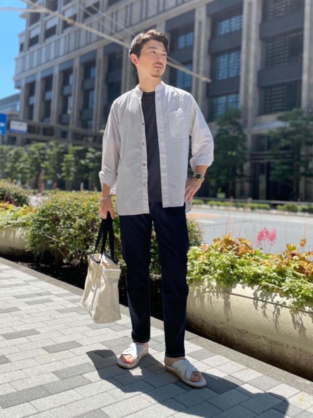【年齢】20代後半 【身長】173㎝ ・普段着用サイズ 【シャツ】M-L 【カットソー】M-L 【ボトムス】M 【シューズ】26.0㎝-26.5㎝ ・スタイリングアイテム 【シャツ】身幅少しゆったり 【カットソー】標準的 【ボトムス】標準的 【シューズ】標準的 【スタイリングコメント】 シャツは若干の透け感があり、非常に軽快な雰囲気です。素材の品も良く、色味も落ち着いてますので、夏から秋にかけTシャツの上からサラッと羽織りたくなります。