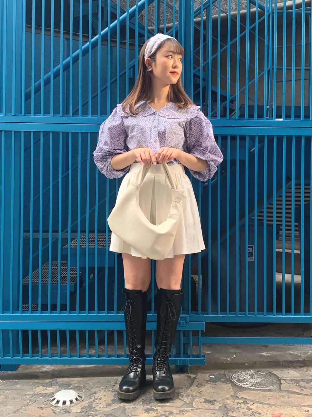 韓国発のALANDが日本上陸! eyeyeコーデ💕 ブラウスの襟が大きいのが女の子らしくてカワイイ^^ ロングブーツで締めるとコーデがまとまります!