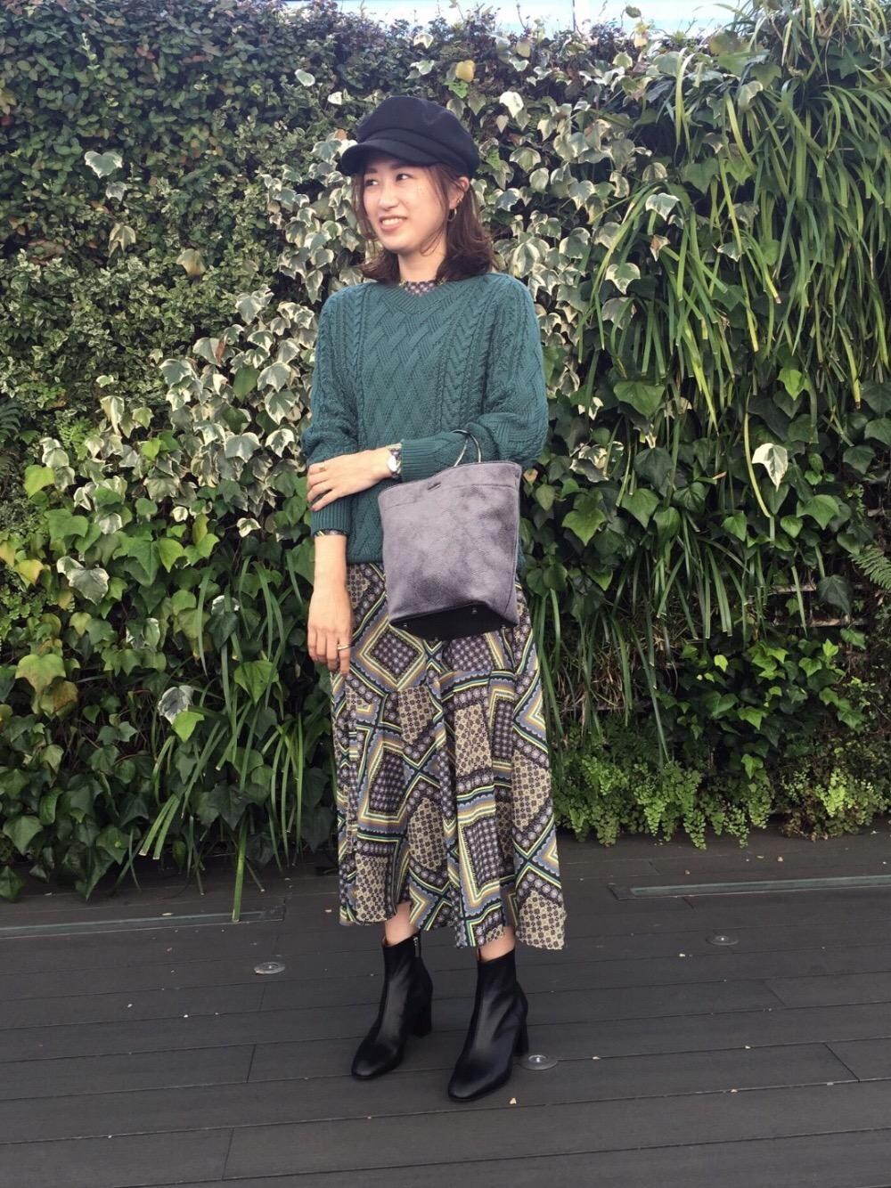 ワンピースにニットのレイヤードスタイルが新鮮でおすすめです。