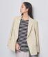【身長】160cm 【普段サイズ】トップス:36 ボトムス:36/38 シューズ:23.5cm 【着心地・サイズ感】 ジャケット:肩周りや身幅は細過ぎずベーシックなサイズ感。麻特有のドライな質感。 カットソー:ややハリ感あり。透け感は気にならない。袖のボリューム感はあるがアウターを着てもそこまで嵩張らない。 ベスト:ややタイト目。首周りとアーム周りもやや詰まり気味。 パンツ:ハリ感のあるコットン生地。ウエストからヒップ周りは細過ぎないサイズ感。 シューズ:やや大きめ。横幅が広めで生地自体はかなり柔らかい。 【コーディネートポイント】 今季ユナイテッドアローズでもオススメしているフレンチスタイルを春らしくアップデート。色合いやアイテムはシンプルですが、袖ボリュームとベストの掛け合わせや、今年らしいホワイトデニムでコーディネートする事でトレンド感をふんわり匂わせているのがポイントです。