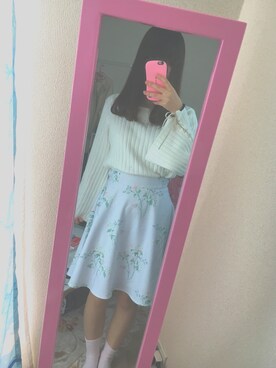 「MAJESTIC LEGON(マジェスティックレゴン)のバックリボンラメプルオーバー(ニット/セーター、ピンク系)」を使った、さこさん(レディース)の春コーディネート