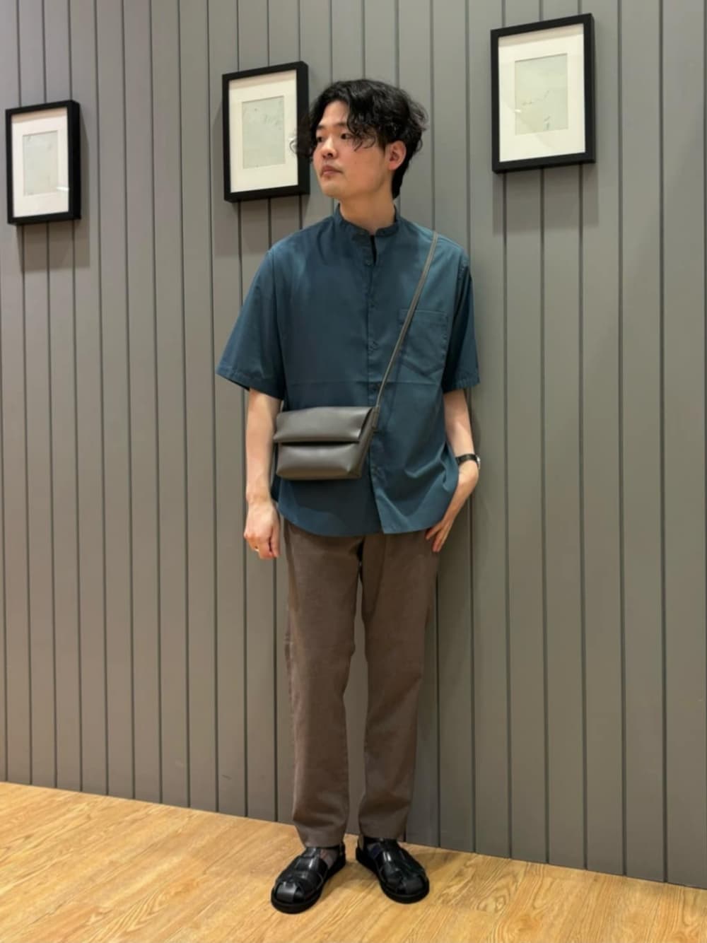 Shohei Okuyama(ユナイテッドアローズ グリーンレーベル リラクシング なんばパ-クス店)のショルダーバッグ「GLR PVC FP ショルダーバッグ V2」を使ったコーディネート