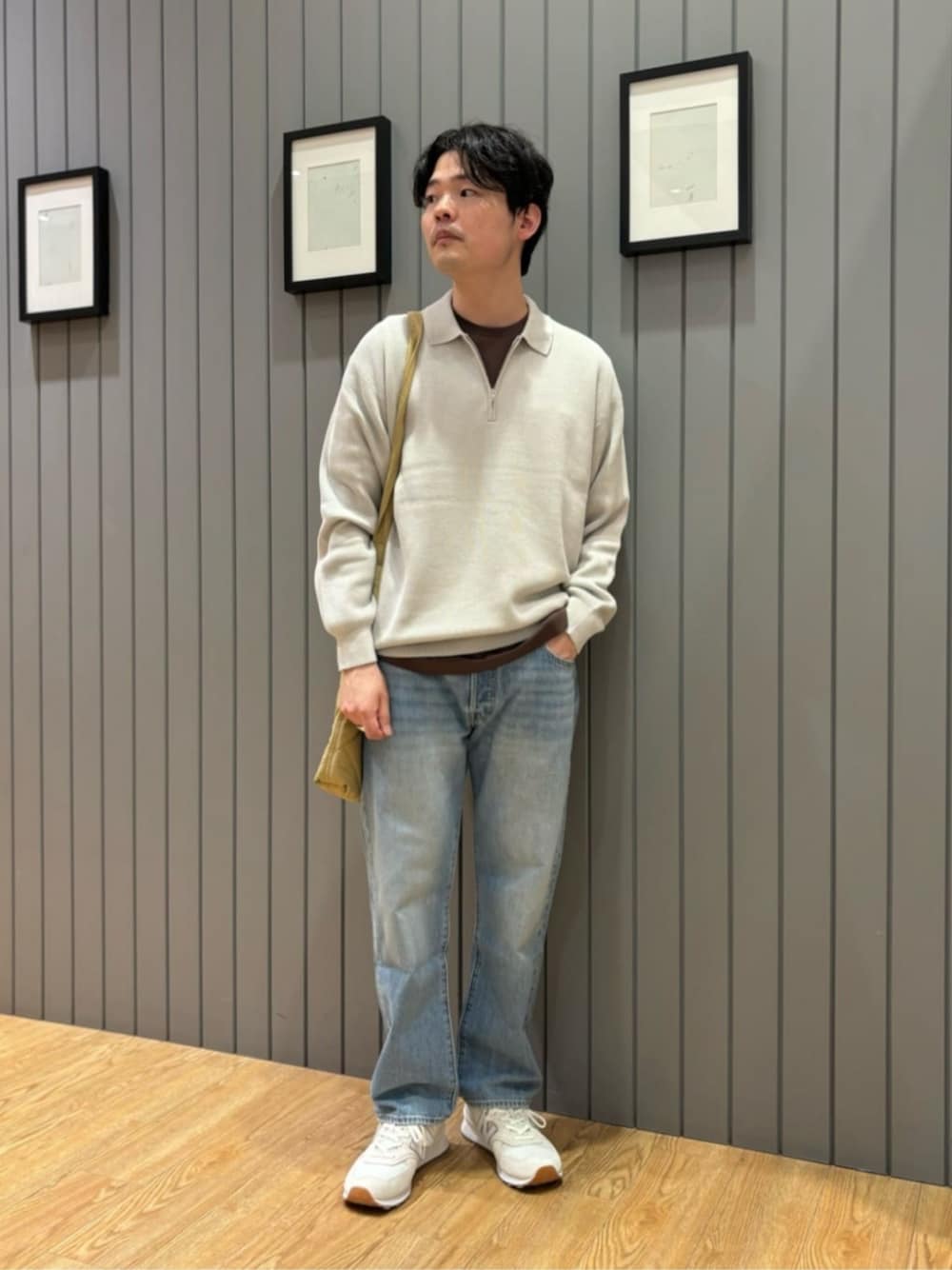 普段のサイズ トップス・基本L ボトムス・基本L シューズ・27.5cm 【着用サイズ、サイズ感】 トップス・Lサイズ/ 適度なゆとり感。 インナー・Lサイズ/ 適度なゆとり感。 ボトムス・33ihch / 標準的。 シューズ・27.5cm / 標準的。 【コーディネートポイント】 トレンド感のあるハーフジップのニットを着用したカジュアルスタイル。 インナーにブラウンを合わせて秋らしさをプラスしました。
