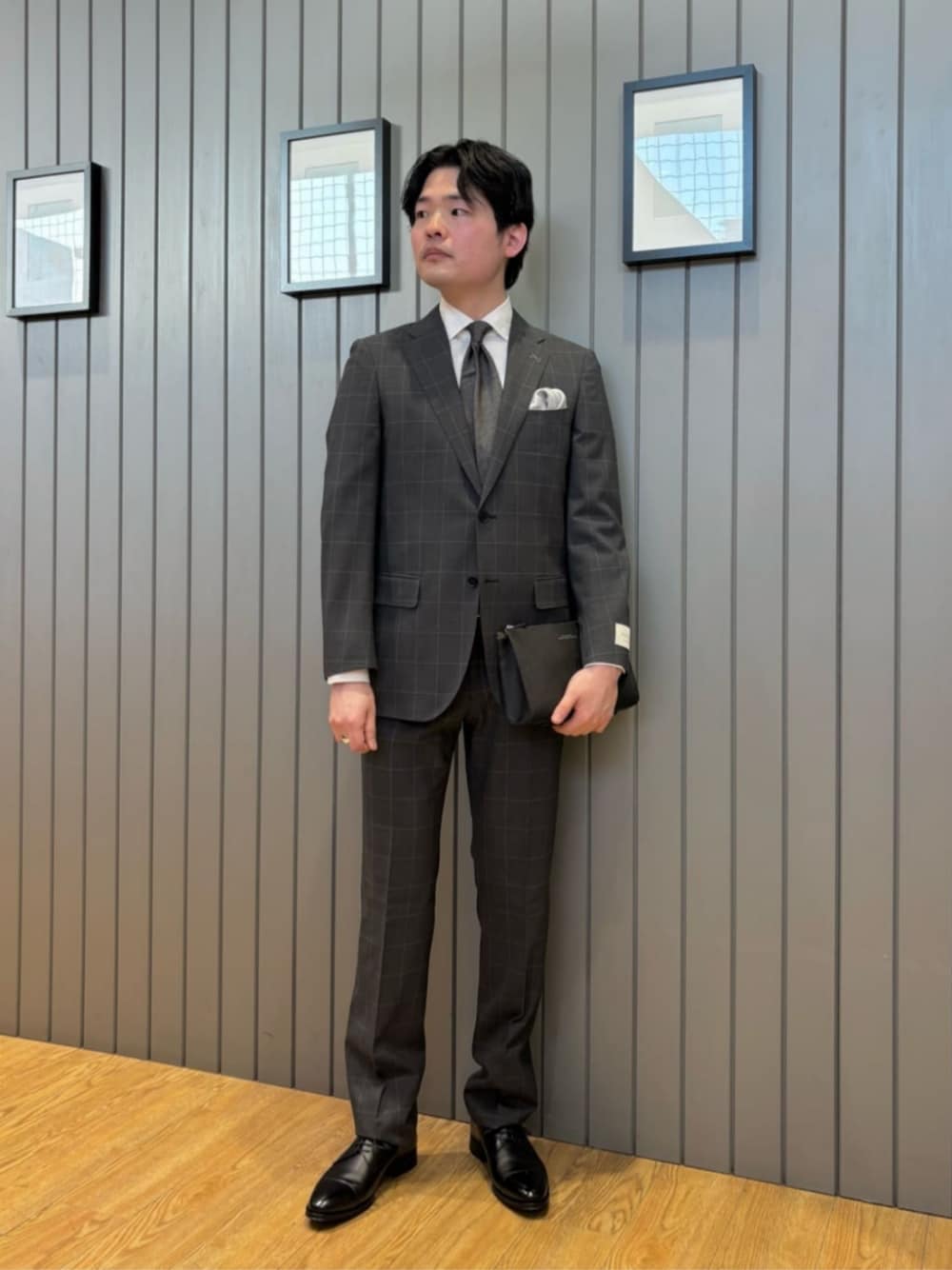 普段のサイズ トップス・基本L ボトムス・基本L シューズ・27.5cm 【着用サイズ/サイズ感/着用感や素材感】 ジャケット・48/ 標準的。 シャツ・39/ 少し細身。 ボトムス・84/ 標準的。 ジャケットと同柄、同素材です。 シューズ・8h /標準的。 【コーディネートポイント】 グレートーンでまとめたスーツスタイル。 入学式や卒業式、結婚式等のフォーマルに装いたいシーンをイメージしました。 バッグを持ち替えると、通勤スタイルにもオススメです。