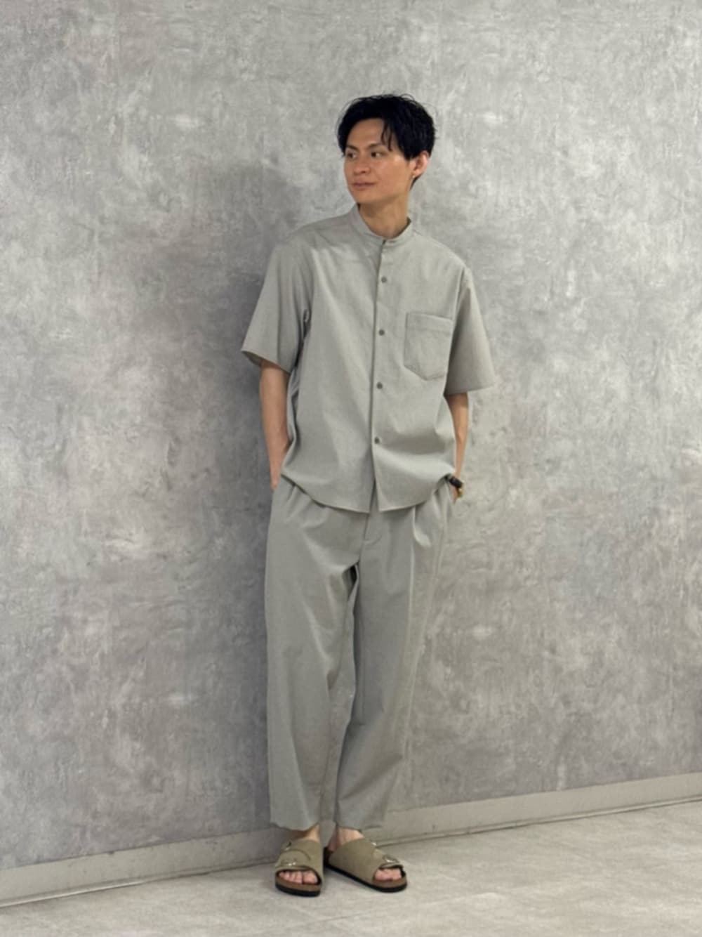 【サイズ感】 トップス:程よくゆったりとしたサイズ感です。 パンツ:ややゆったりとしたシルエットのパンツです。 【コーディネートポイント】 KOMATSU PACKシリーズのセットアップでコーディネートしました。足元はサンダルで夏らしく爽やかにまとめました。