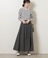 [身長] 163cm [普段のサイズ] トップス36、ボトムス34or36、シューズ23.5cm [サイズ感] トップス:標準的でほどよくフィット感があります。 スカート:身長163cmで36サイズを着用すると、足首がしっかり出るくらいの着丈です。 シューズ:普段36Hを選ぶ事が多いですが、36サイズで丁度良かったです。 [素材感.着心地] トップス:ややしっかりめな生地に上品な光沢感が、オンオフ共に合わせやすい素材感です。 スカート:ハリがありボリュームのあるデザインですが、腰回りはすっきりとしています。コットン100%素材でご自宅で手洗い可能です。 シューズ:アッパーの素材感が柔らかく、甲高の方でも合わせやすいです。 [コーディネートポイント] スカートのタックデザインを際立たせる為、フィット感のあるニットをインして合わせました。スカーフにボールチェーンのネックレスを重ね付けして華やかさもプラスしています。