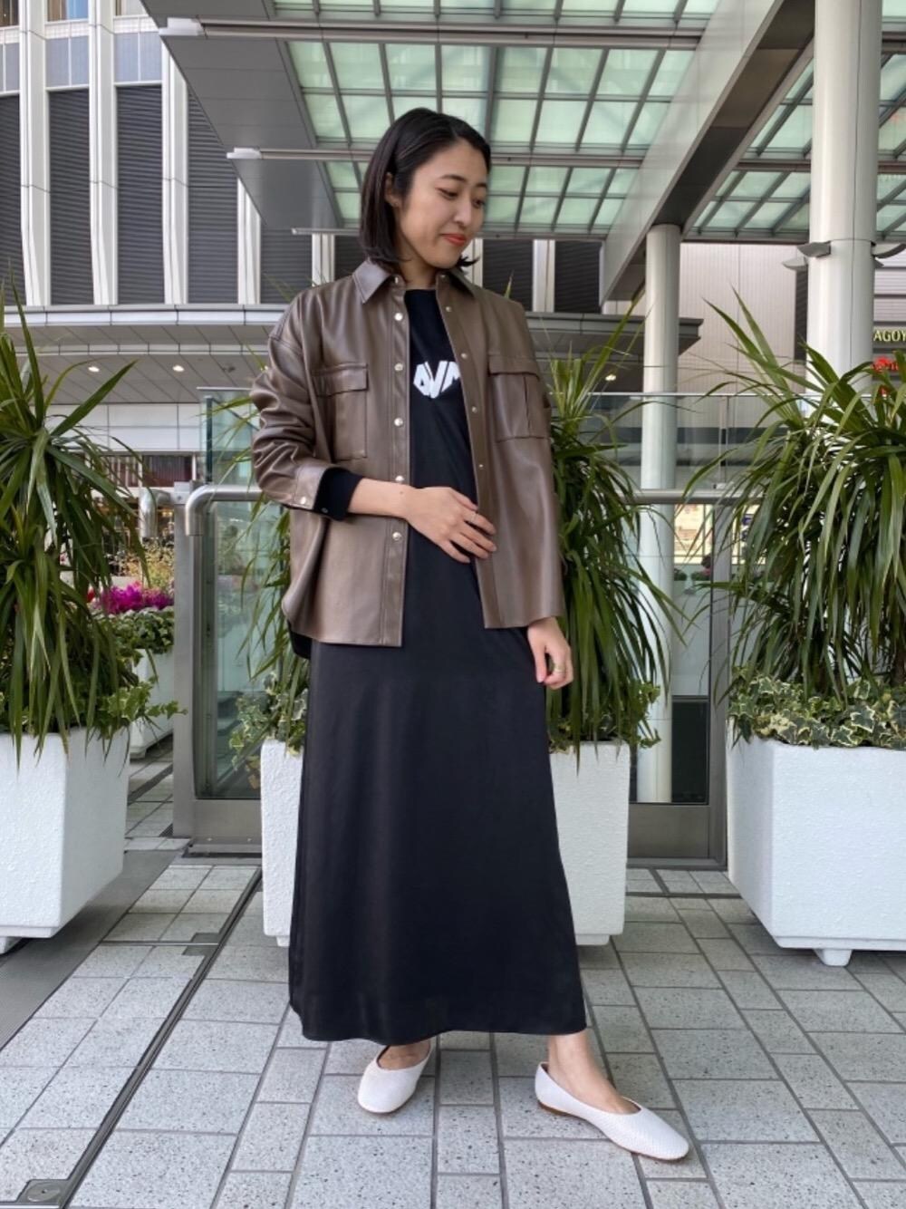 新作のキャミワンピースにレザーシャツを合わせてトレンド感を意識しました! キャミワンピースは一着持っておくと着回し抜群のアイテムです。今の時期は薄手のニット合わせて、春先はブラウスやカットソーと合わせて長いシーズン着用可能です。