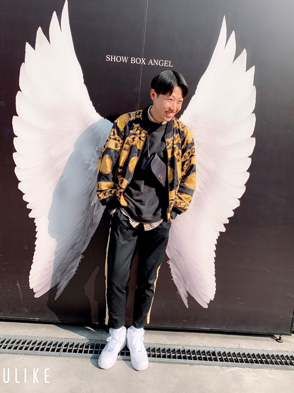 新大久保に行った時のコーデ! 派手ブルゾンがコリアン感出してますね! ZARAパンは安くて丈感良かったので購入! ローカット穿けばいい感じだったけど、エアフォースにしたかったからこんな丈感に笑笑