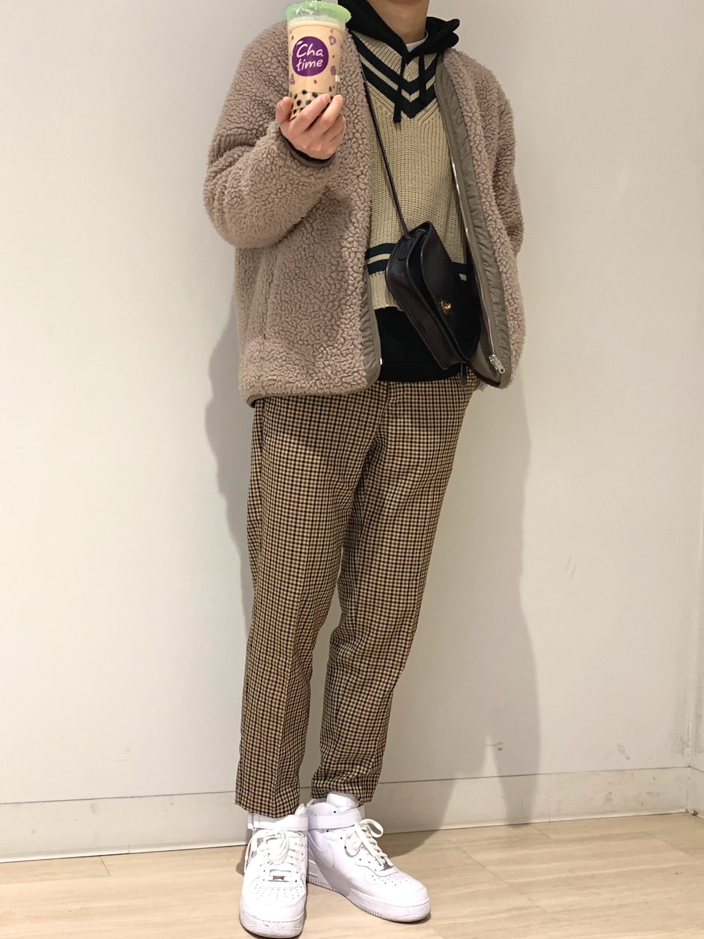 今日は寒かったので、ハレチルデンをカジュアルにパーカー合わせ😋 たまにはGUはいてみようと思ってはきました笑 トーン合わせて足元はボリュームあるair force✌︎