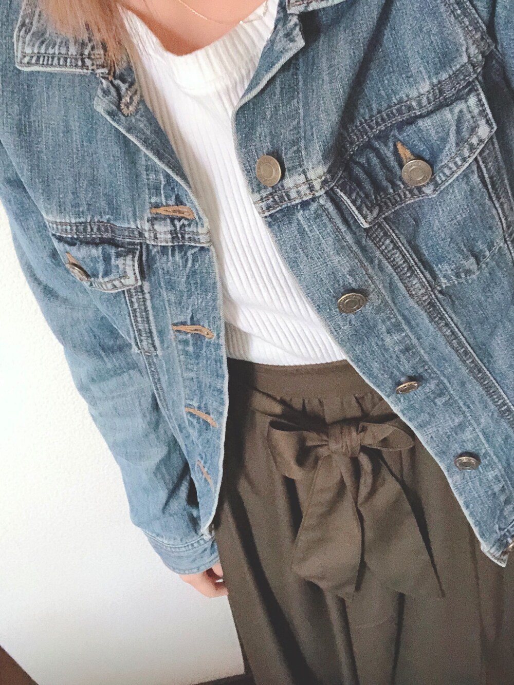 続けてすみません。 デニムジャケットとスカートの組み合わせは無敵だと思います 靴はスニーカーでも可愛い