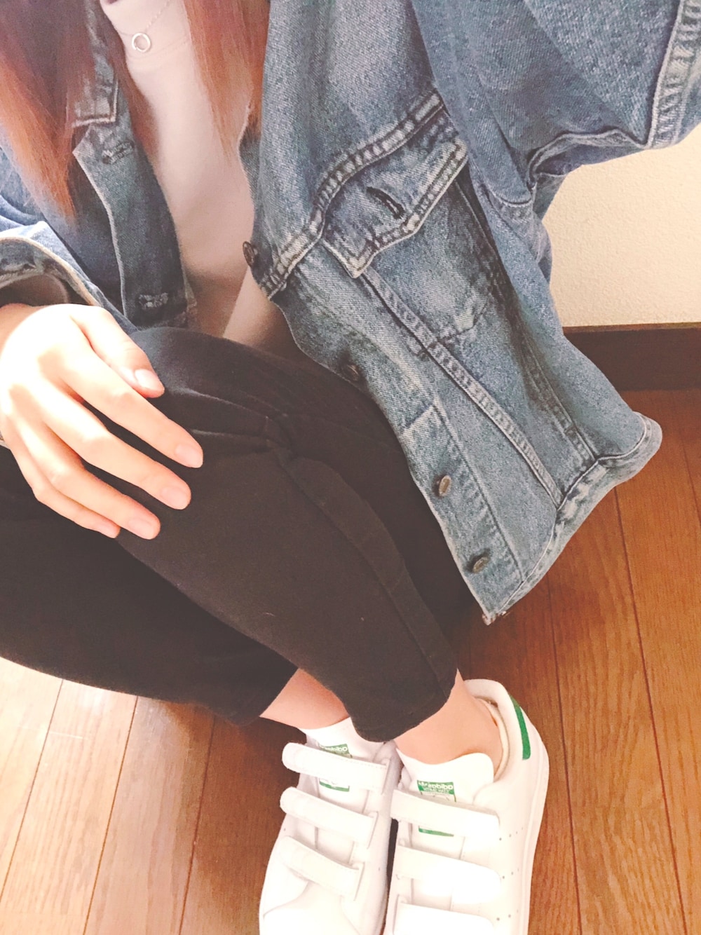 macaronのスニーカー「adidas アディダス STAN SMITH CF スタンスミスCF S75187 ABC-MART限定 WTH/WTH/GREEN」を使ったコーディネート