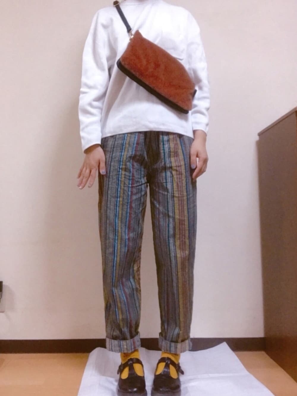 このズボンはねほんとはセットアップ。👕👖一緒に着たいな〜🤔 カバンもふもふちょっと毛がある。 フォロワーさんが増えとる〜ありがとうございますう。🧚🏻♂️