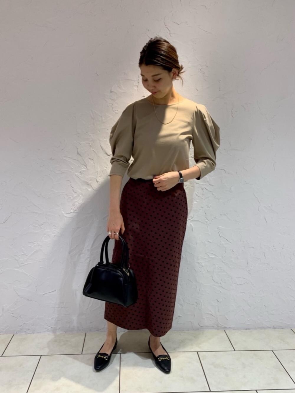 【身長】168cm 【サイズ感】 トップス:ぴったり スカート:ウエストはぴったり、丈もぴったり ワントーンでレトロな雰囲気のスタイリング。カウルスリーブのトップスは一枚で楽に着映えします◎スカートも合わせ方次第で綺麗めにもカジュアルにも使えます!スニーカー合わせなどもオススメです!!