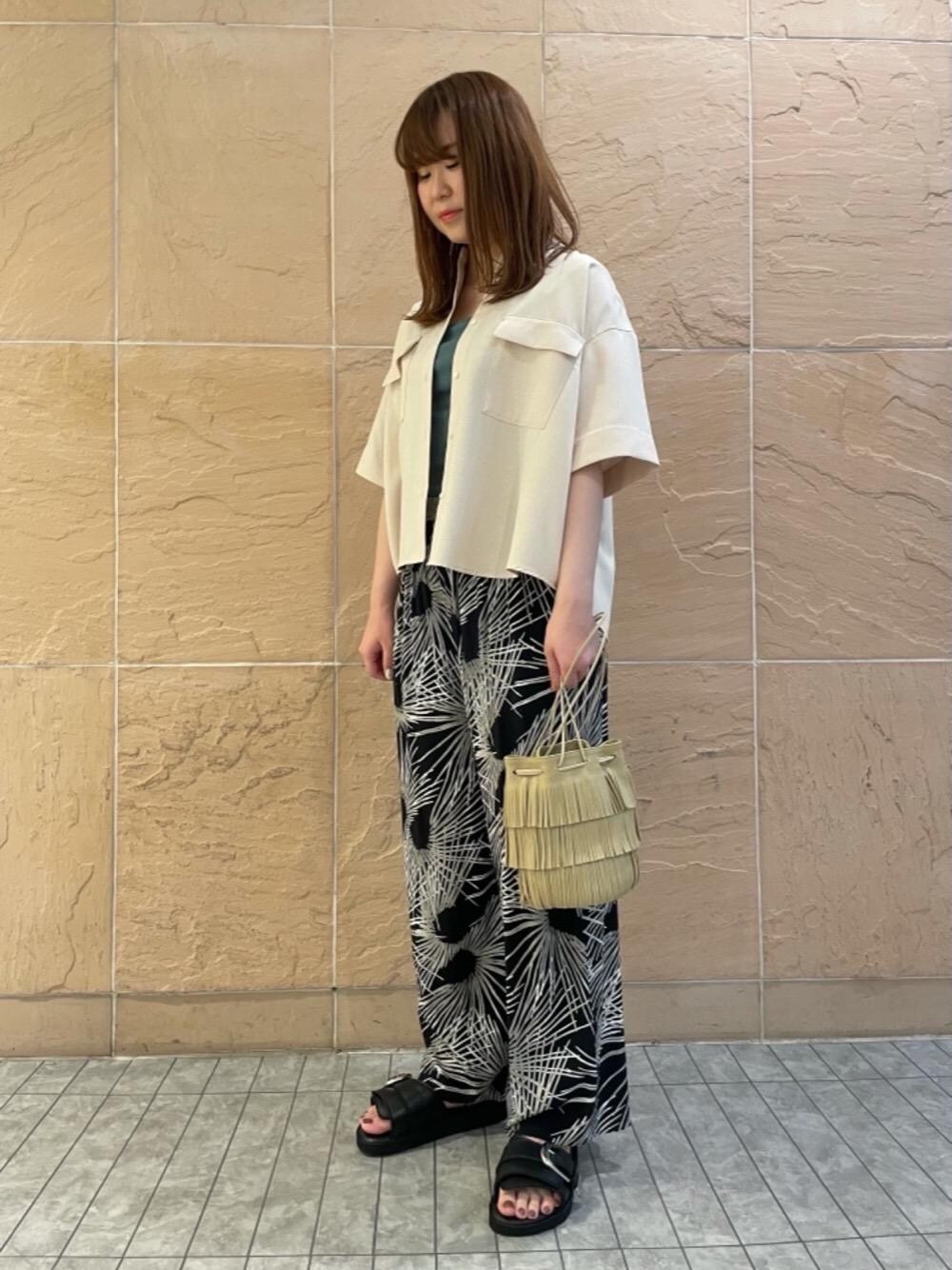 [身長] 161cm [普段サイズ] トップスフリーサイズ/ボトムスM/シューズ24cm [サイズ感] トップス:ゆったり ボトムス:ゆったり シューズ:やや大きめ/ベルトでサイズ調節可能 [素材感] トップス:ポリエステルの為軽い/洗濯可能 ボトムス:薄い素材だが柄物の為透け感はなくはき易い [着心地] トップス:袖や見頃など全体的に大きくゆったりめ ボトムス:ウエストがゴムの為着易い [コーディネートポイント] シャツに大きめな柄のパンツを合わせることで、シンプルになりすぎずにまとめてみました。また、シャツは前を留めてパンツにINしても違う印象になるので様々な着回しができます。