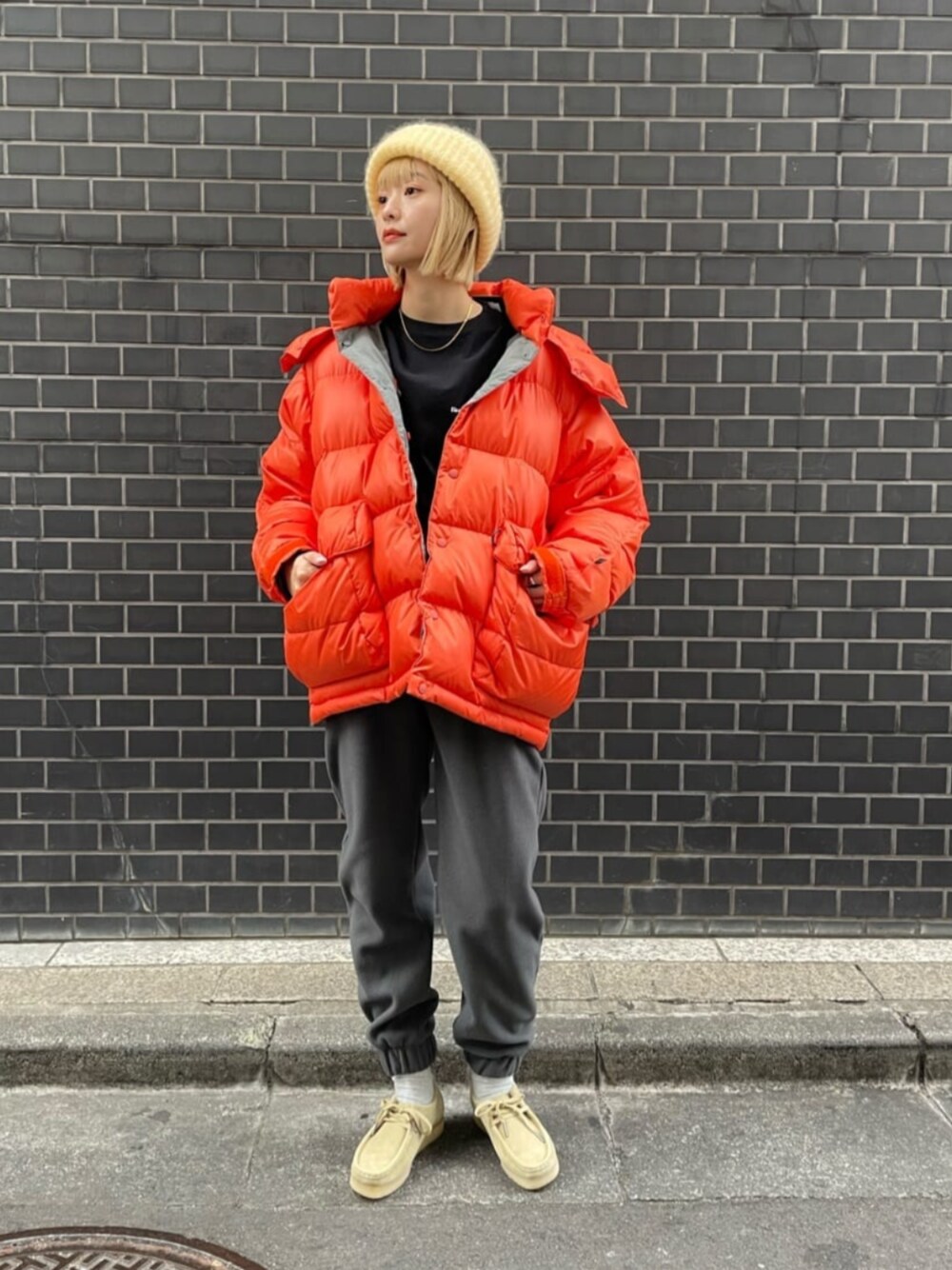 [身長] 169cm [普段サイズ] トップスM(38)/ボトムスM(38)/シューズ25-25.5(38) [サイズ感] アウター:ゆったりめ トップス:標準 ボトムス:標準 シューズ:標準 [コーディネートポイント] 全体的にボーイッシュなアイテムでまとめました。シューズはスニーカーだとカジュアルすぎるので<CLARKS>のシューズを合わせバランスをとりました。