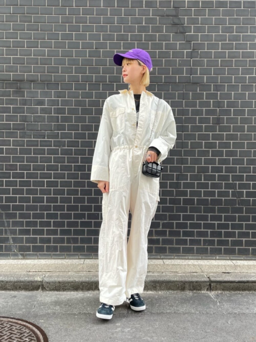 [身長] 169cm [普段サイズ] トップスM(38)/ボトムスM(38)/シューズ25-25.5(38) [サイズ感] トップス:標準 オールインワン:ややゆったり シューズ:標準 [コーディネートポイント] オールインワンの中にロンTを合わせました。オールインワンは腰で巻くのもおすすめです。