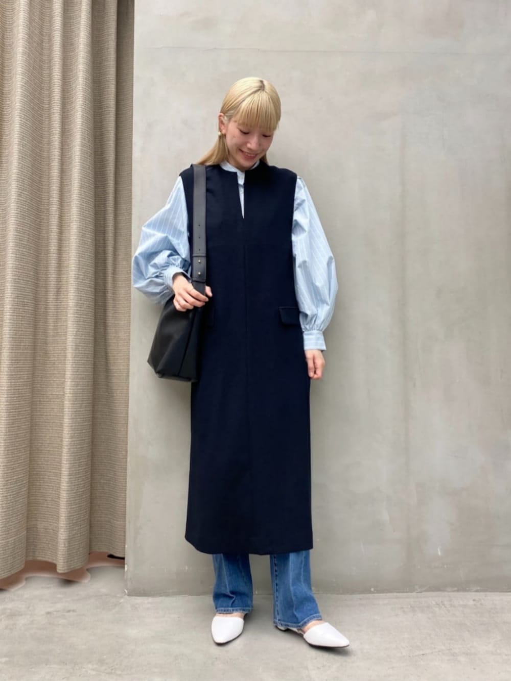 【サイズ感】 ・ブラウス : ゆったりめ。 ・ジャンパースカート : ややゆったりめ。 ・パンツ : 標準的。 ・シューズ : 普段通り37を着用しております。 【コーディネートポイント】 ジャンパースカートとブラウスを合わせて綺麗めなスタイリングにしました。ジャンパースカートは合わせるアイテムによって印象が変わる万能なアイテムです。