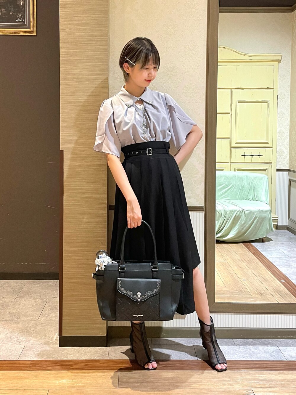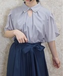 〚大人可愛いモードコーデ〛 ブラウスはチューリップ袖でフレアなシルエットとなっており、落ち感のあるサラッとした生地感のため夏も涼しくお召いただけます。 晩夏や秋口には長袖のレースインナー等レイヤードしても◎