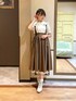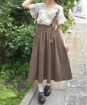 〚フェミニンコーデ〛 ブラウスはビッグカラーに散りばめられたリボンがとってもガーリーな雰囲気に。 スカートはサスペンダーで調節出来るため、低身長さんにもオススメです。 ペチスカートをレイヤードしてフェミニンさをプラスしても♪