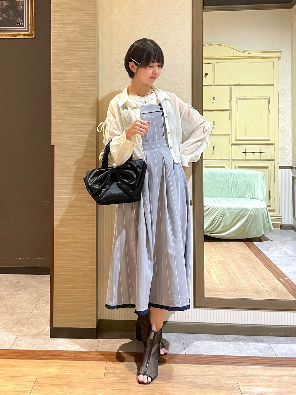 白あん(axes femme イオンモール倉敷店)のブーツ「ライン使いシアーブーツ」を使ったコーディネート