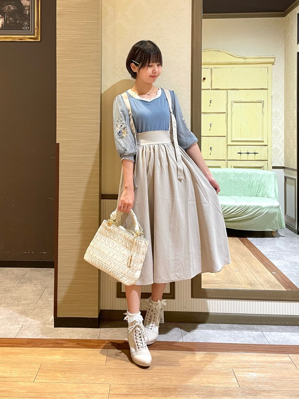 白あん(axes femme イオンモール倉敷店)のブーツ「チュールレースアップブーツ」を使ったコーディネート