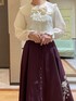 〚和ロリ風クラシカルコーデ〛 ブラウスは、シンプルなデザインながらも丸襟やフリルがガーリーに決まる超万能アイテム! クラシカルなジャスミン刺繍スカートに組み合わせて、甘さ控えめな和ロリ風スタイルに仕上げてみました。