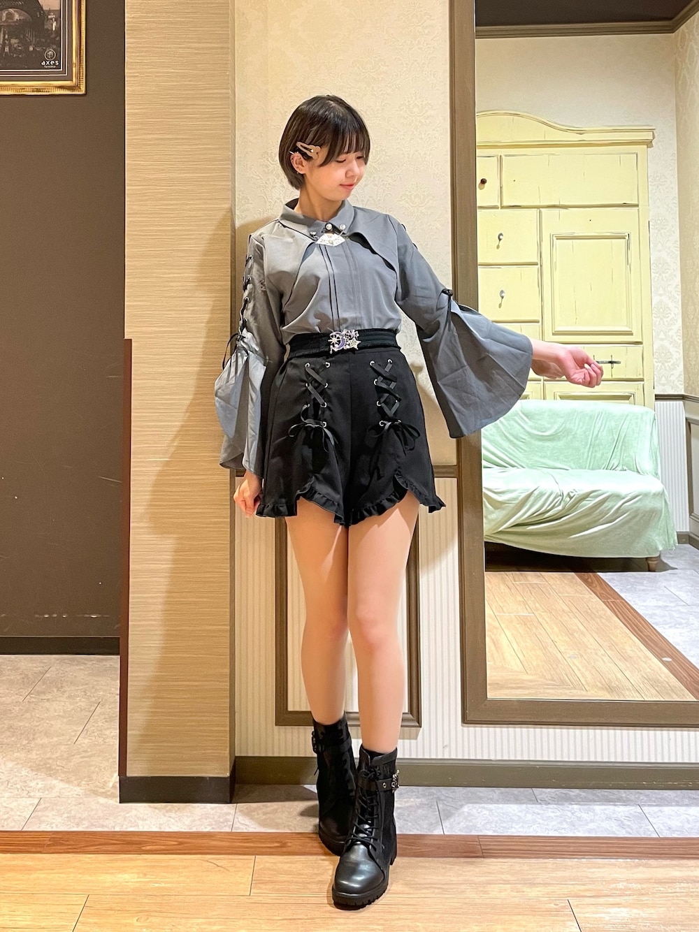 白あん(axes femme イオンモール倉敷店)のブーツ「ベルト付レースワークブーツ」を使ったコーディネート