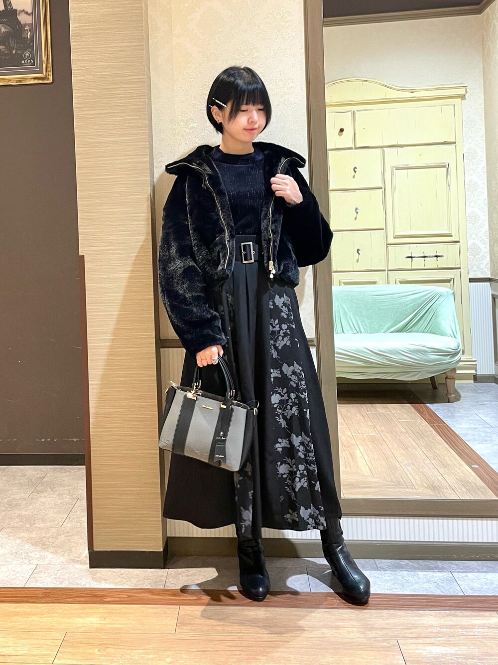 白あん(axes femme イオンモール倉敷店)のスカート「フラワーフロッキー切替スカート」を使ったコーディネート