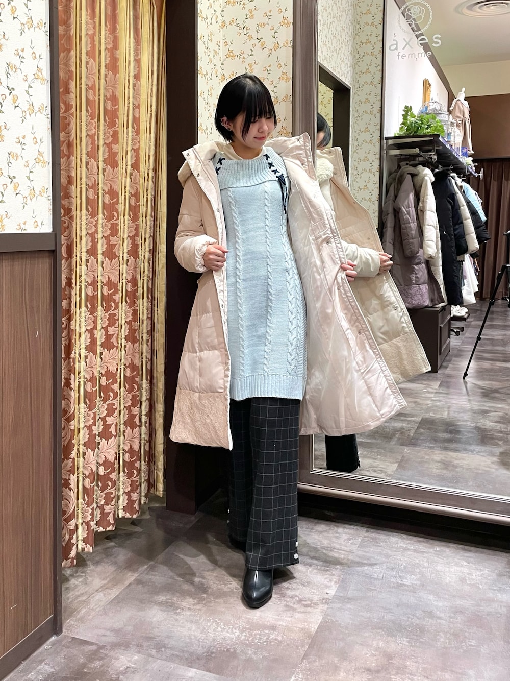 白あんのダウンジャケット/コート「裾レースロングダウンコート」を使ったコーディネート