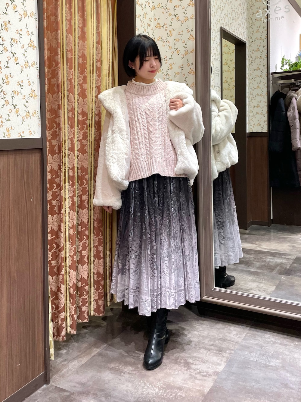 白あんのダッフルコート「ファーコート」を使ったコーディネート