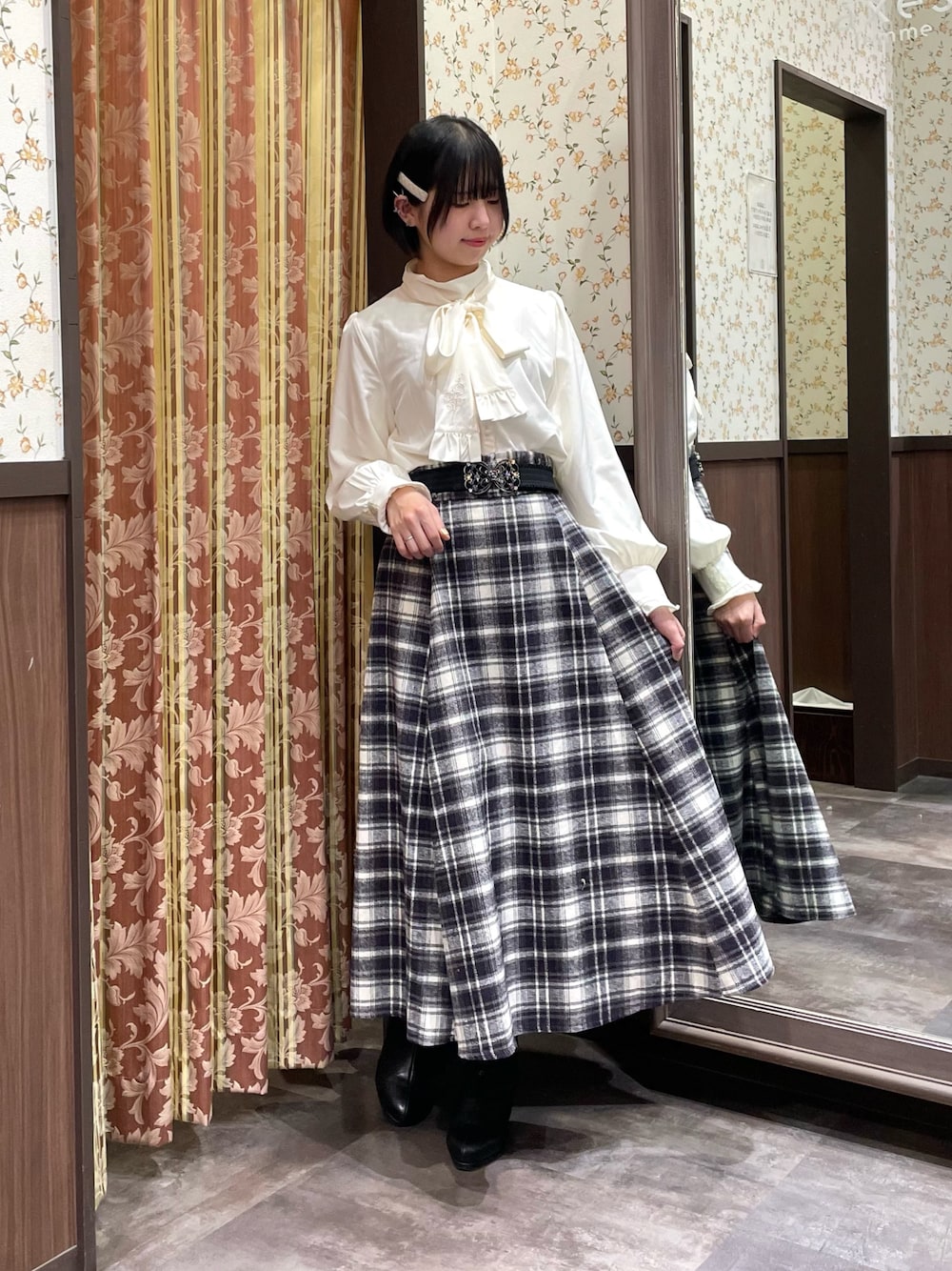 白あんのスカート「起毛チェックフレアスカート」を使ったコーディネート