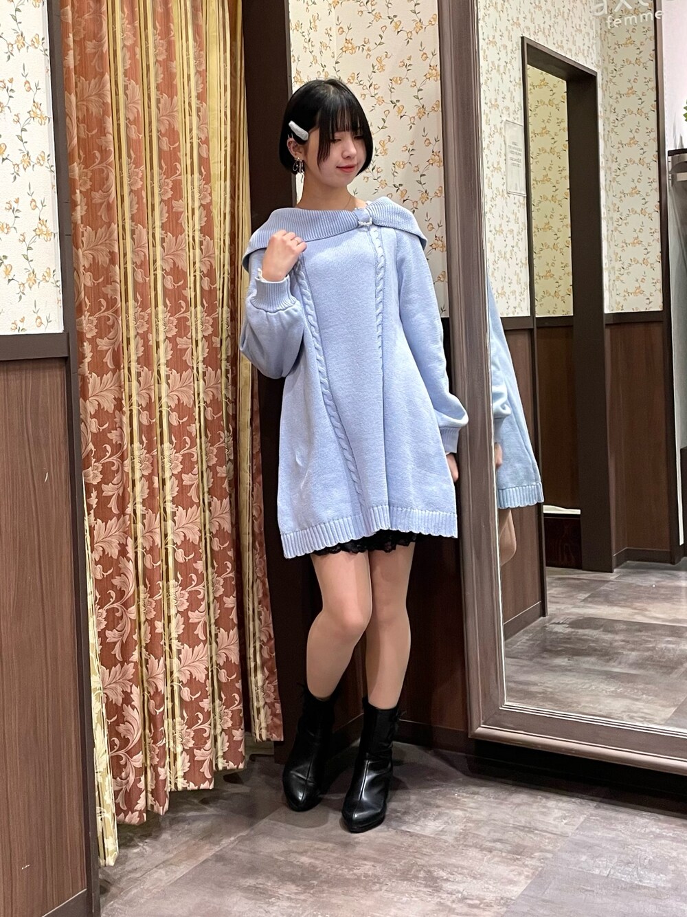 白あん(axes femme イオンモール倉敷店)のチュニック「リボン襟ニットミニワンピ」を使ったコーディネート
