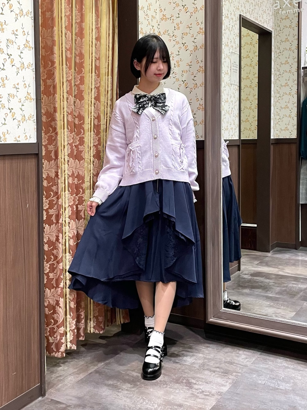 白あんのシャツ/ブラウス「ジャカードリボン付ブラウス」を使ったコーディネート