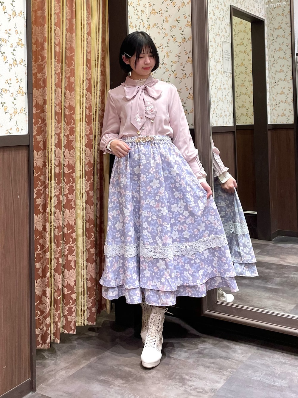 白あんのスカート「サクラ柄フレアスカート」を使ったコーディネート