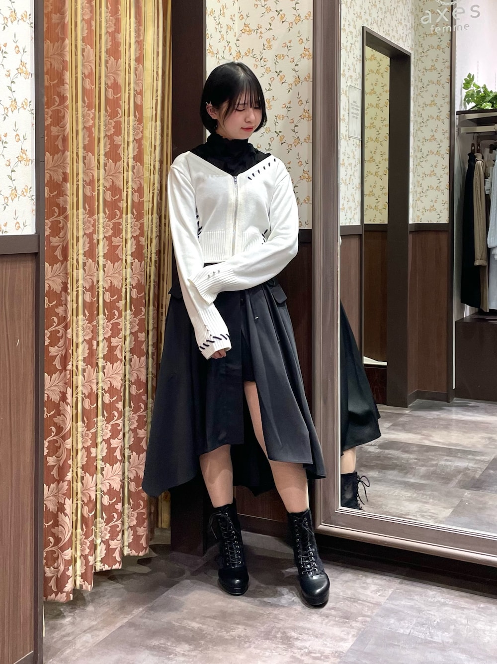 イレヘムスカートは、中にショートパンツやキュロット等レイヤードしてオーバースカート風にお召いただいても。 カジュアルなデザインから一気に雰囲気が変わるオススメスタイルです♪