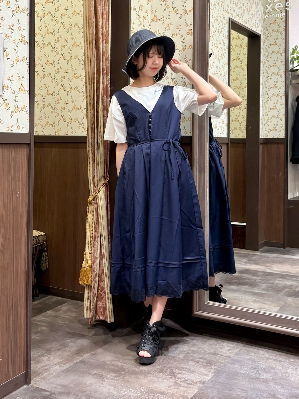 ピクニックにもピッタリ♪ オシャレ可愛いカジュアルコーデです。 ジャンスカはシンプルなデザインのため、お手持ちのアイテムにも合わせやすいかなと思います。