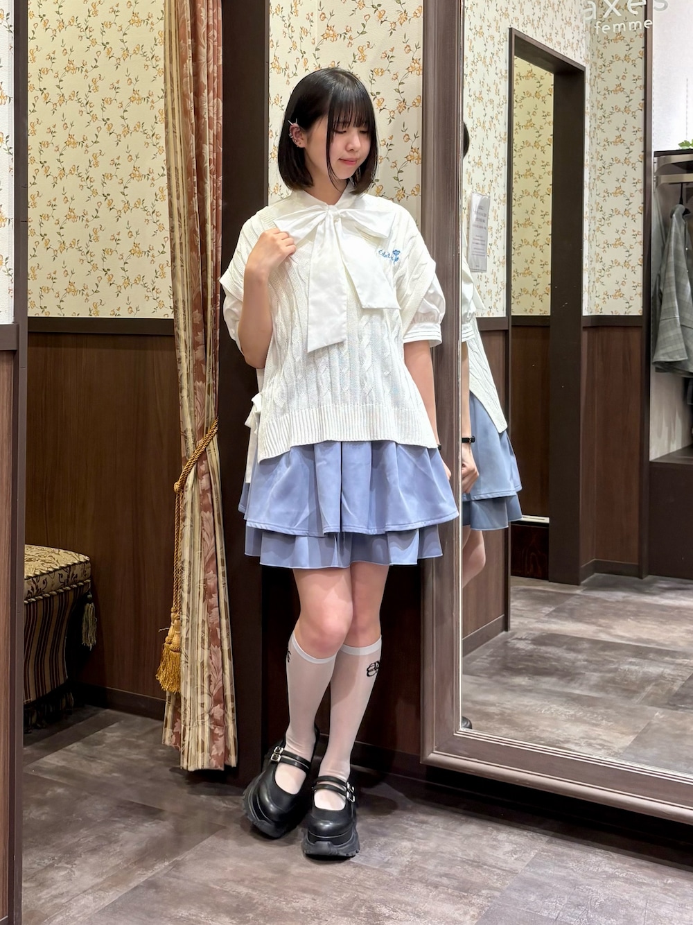 白あんのシャツ/ブラウス「ビッグリボン半袖ブラウス」を使ったコーディネート