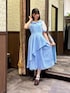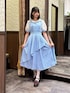 ▼星座刺繍アシメドッキングワンピース▼ 全色裏地なし。 サックスカラーは綿混で、とっても軽い生地感。 透け感気にせずお召いただけます。