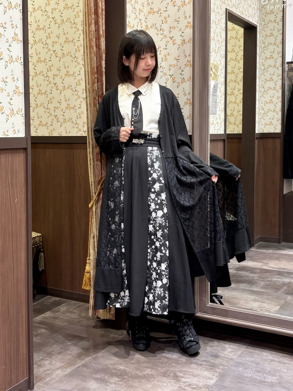 白あんのシャツ/ブラウス「スタッズネクタイ付ブラウス」を使ったコーディネート