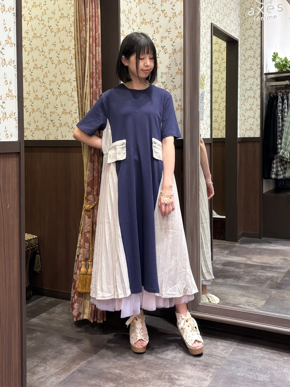 チュールスカートをレイヤードしたワンピースコーデです。 裏地はなく、プリーツ部分が若干シアーなのでパンツやスカートを合わせたスタイリングがオススメです。