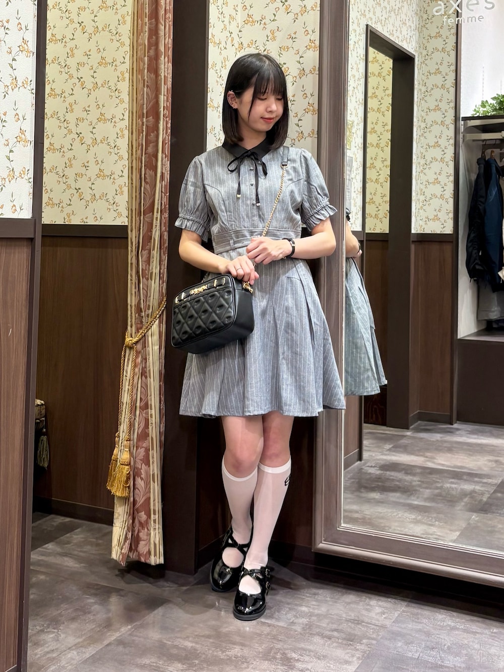 モノトーンでまとめた大人ガーリーなコーディネート。 低身長さんから高身長さんまで幅広くお召いただけます♪