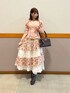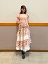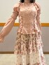 ▼アームカバーセット綿混ブラウス▼ カジュアルに普段使いはもちろん、エレガントなボトムスとの組み合わせも◎ 編み上げや裾のフリルが可愛く、アウトスタイルがオススメです。 首元の紐は縫い付けのため取り外し不可。 ▼小花×レースパッチワークスカート▼ ハイウエスト&ロング丈で、大人っぽくエレガントな雰囲気に仕上がります。 上品なティアードデザインがポイント。 今の時期にはデニムジャケット等合わせたカジュアルめなコーディネートもオススメです。