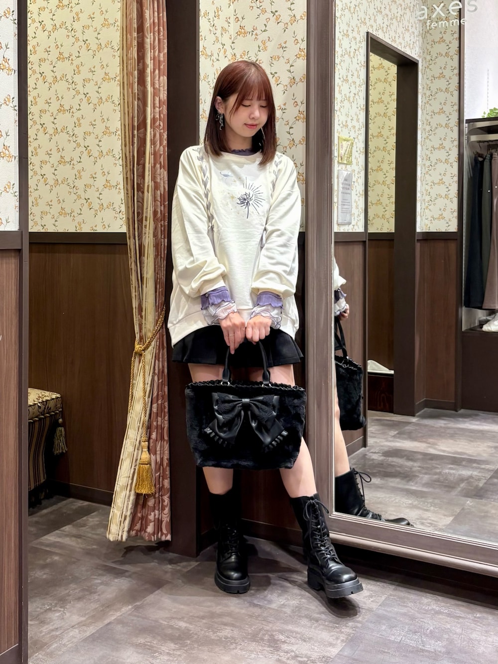 ゆるっと感が可愛い編み上げアソート柄トレーナー。 ミニ丈ボトムスを合わせて、カジュアルガーリーな雰囲気に仕上げてみました。 ※シューズは私物です