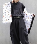 和面プリント和袖シャツ:Lサイズ着用。 和袖&シルエットがとっても人気なアイテム。 ミニボトムスを組みあわせてサブカル風に仕上げてみました。