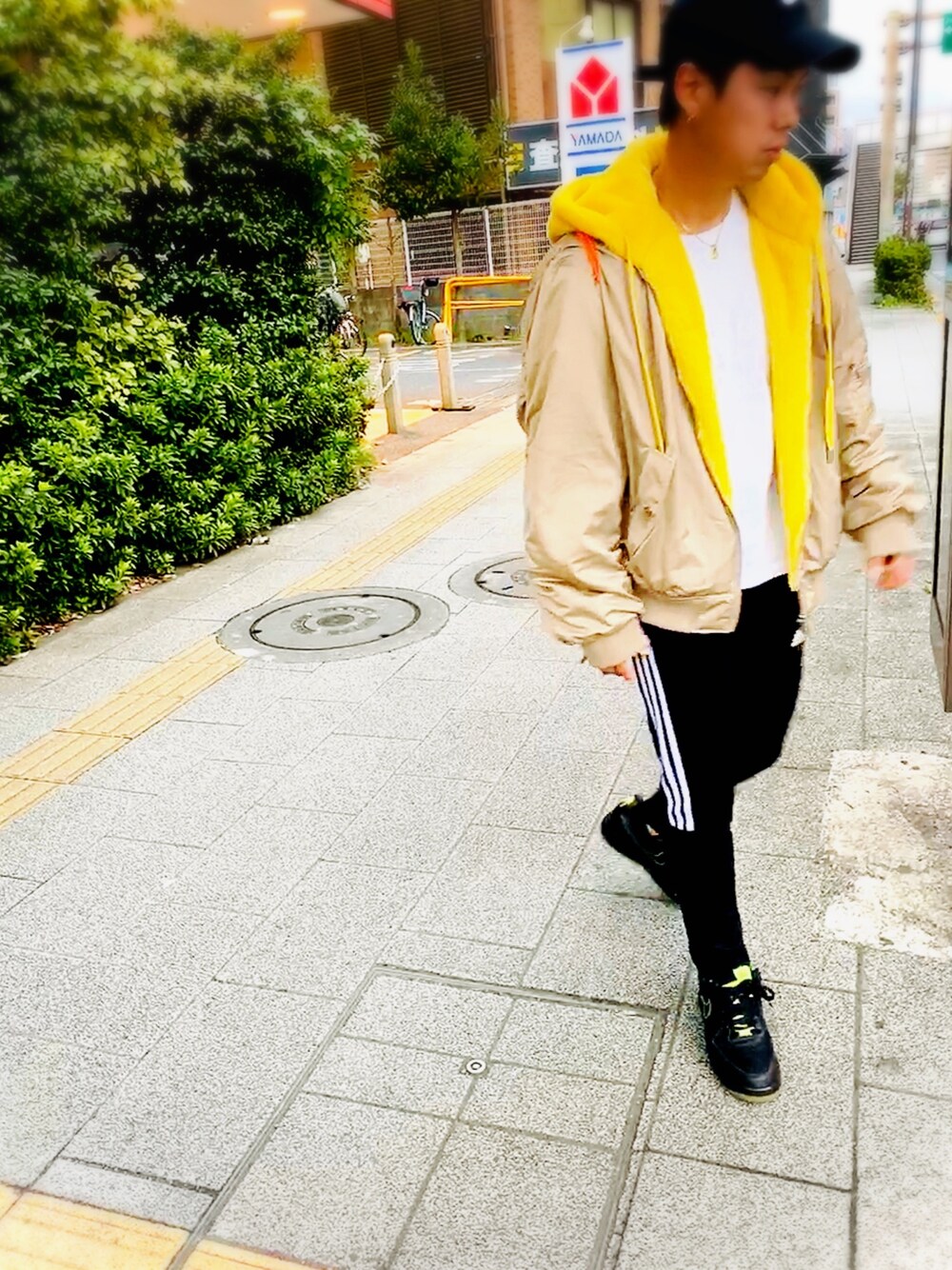 このアウター リバーシブルで気分によって変えられる。 裏は真っ黄色^ ^ 派手〜